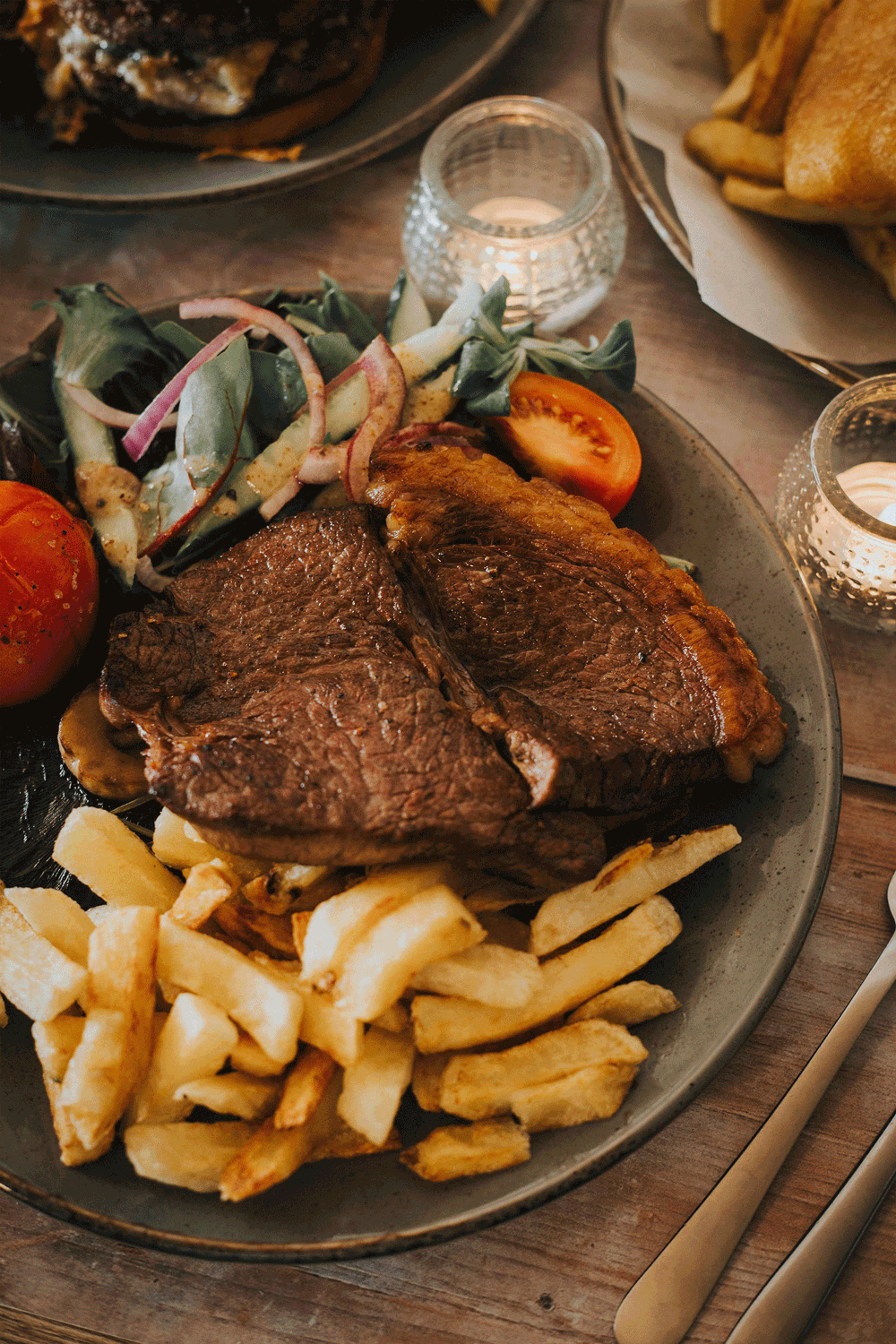 A show-stopping, beautifully marbled bone-in tomahawk steak, perfectly seared and cooked to your liking. A true showcase of our prime Greendale beef, served alongside new potatoes, roasted seasonal vegetables, tomatoes and mushrooms with a creamy peppercorn sauce. Who are you sharing this with? £75 for two, book online now!
