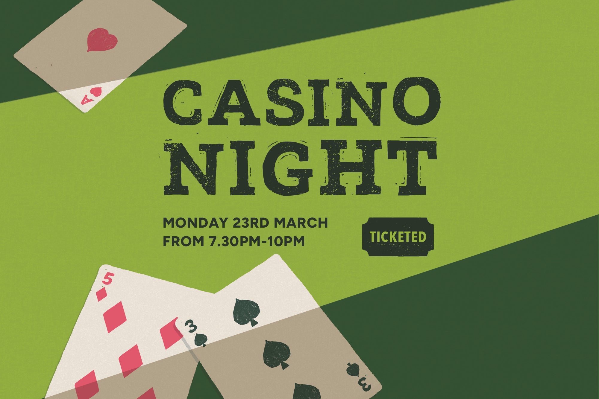 We're bringing Vegas to East Devon! Join us for a tense night of classic casino games with prosecco on arrival and canapés from the Greendale chefs. The Casino Select team will be here with Roulette, Blackjack and Poker tables for you to try and beat the dealer!