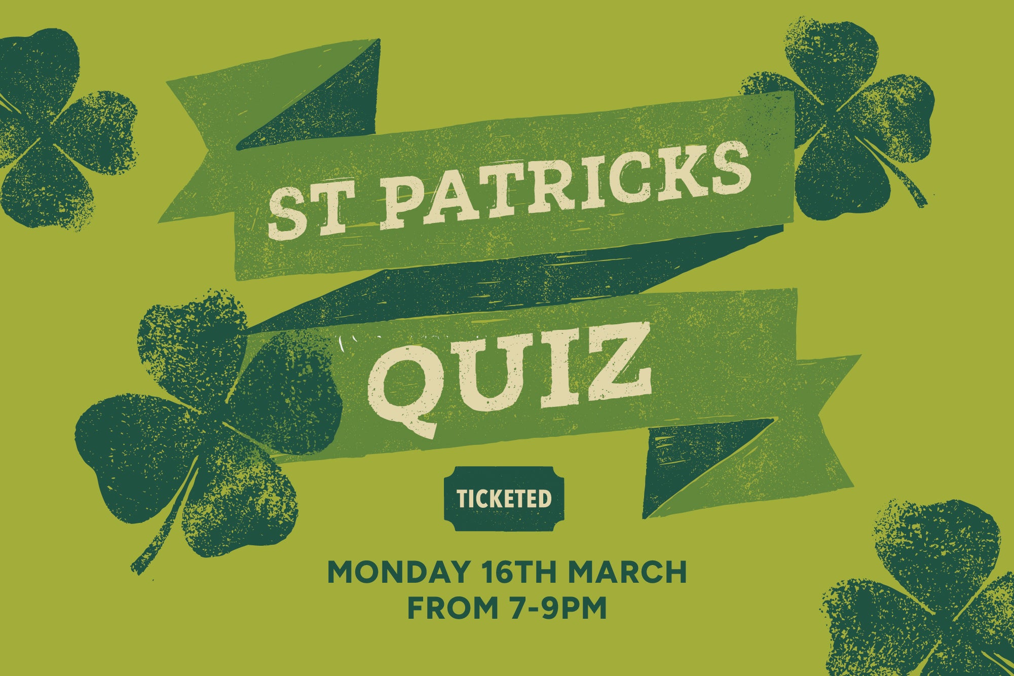 Join us in the Greendale Kitchen on 16th March at 7pm for our special St. Patrick's Day Quiz! We'll be settling in for a multi-round general knowledge quiz so grab your friends and get your thinking caps on! Places are limited and the ticket price includes Jumbo Battered Sausage & Chips. Teams of up to 6 people. We'll end the evening with a tense game of Play Your Cards Right for a chance to win a cash prize - so bring some change for a chance to have a go!