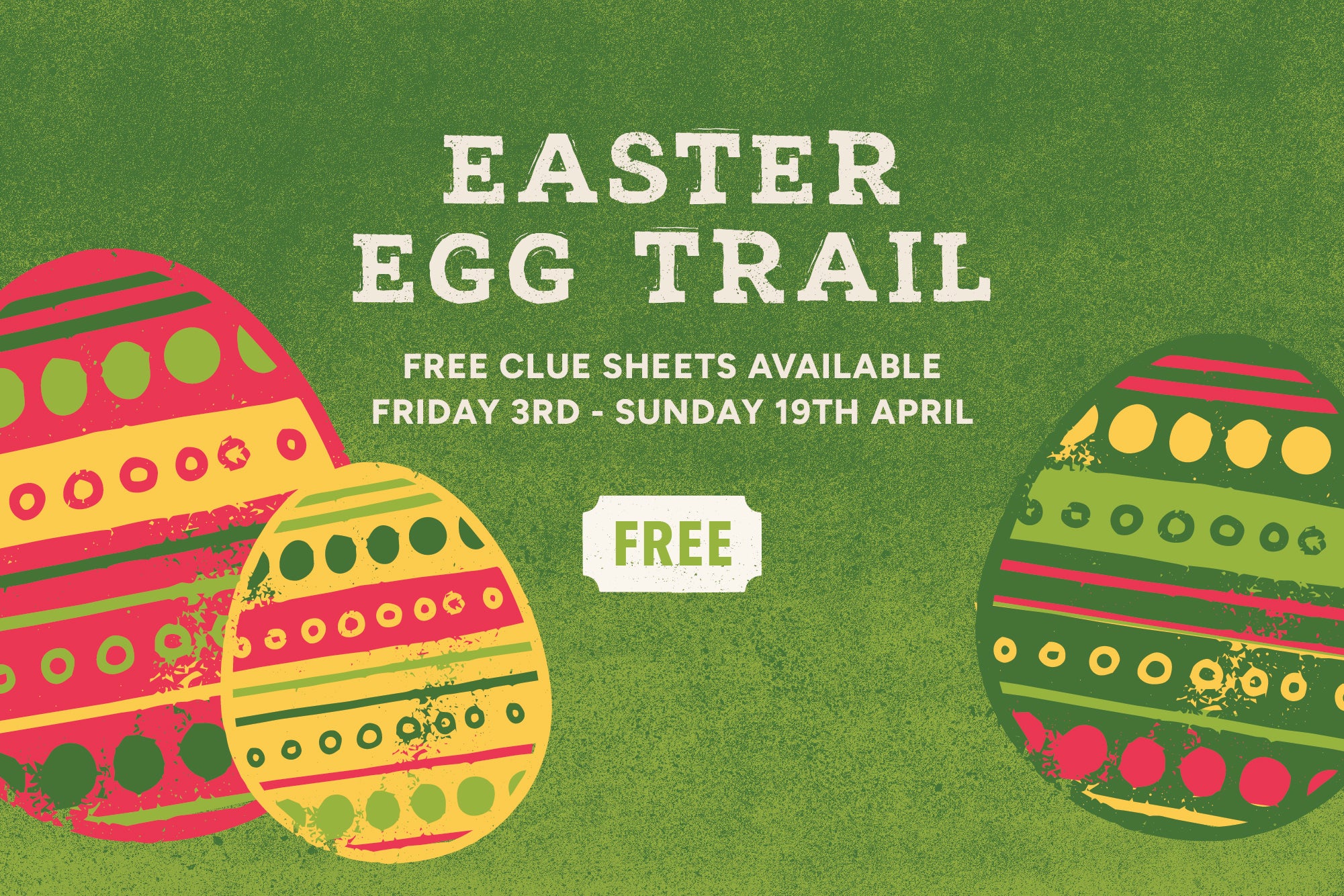We'll be open our usual 8am-10pm every day over the Easter Holidays! Come & visit and grab our FREE Easter Egg Trail sheet from the Oscar's Takeaway & Drive-Thru from Friday 3rd - Sunday 19th April.