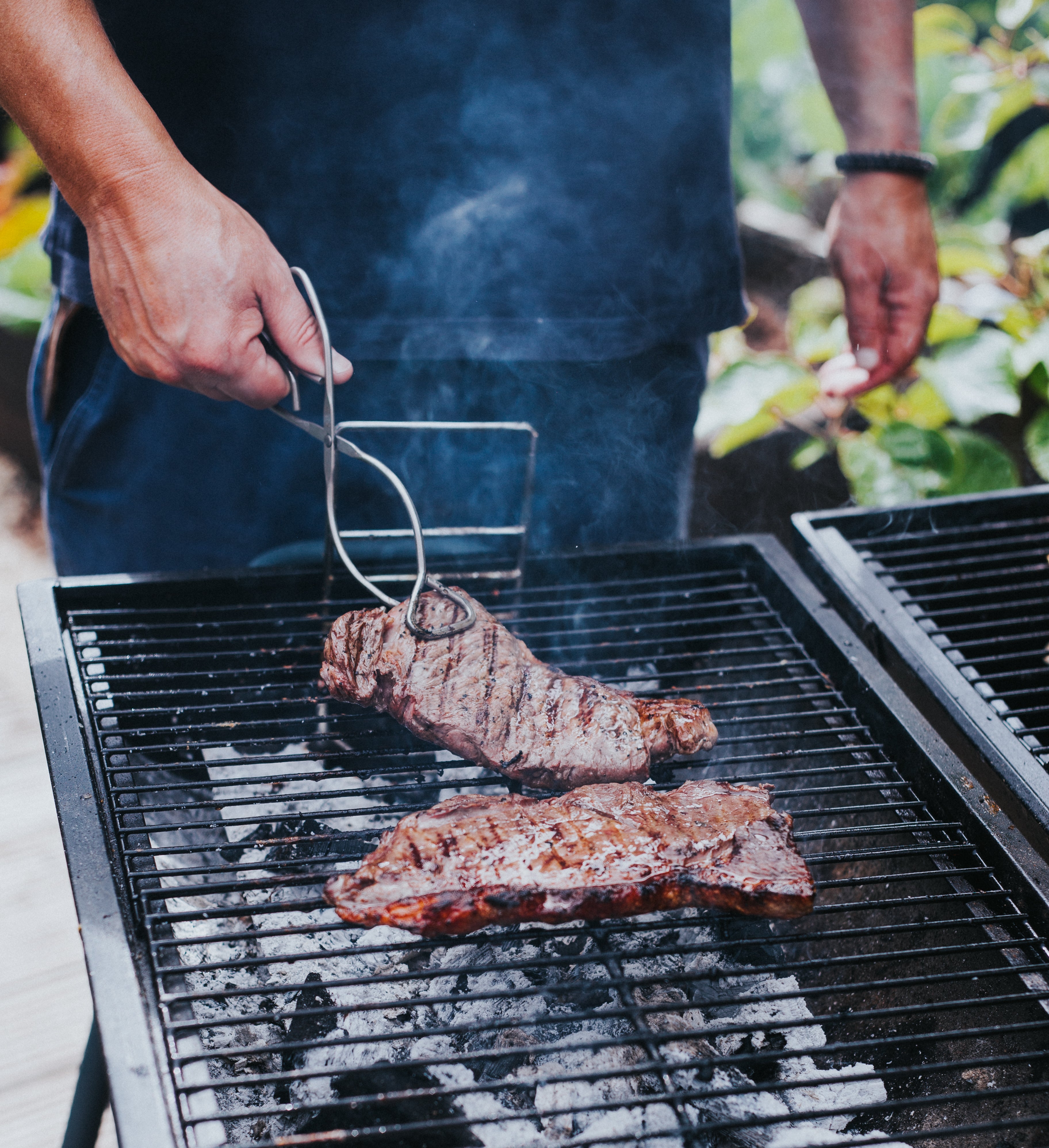 Set up your BBQ with coals on either side and a gap between them large enough to hold the butternut tray. This is the moment to add some woodsmoke flavour if you like – a small handful of smoking chips or a golf ball-sized chunk would be perfect (my favourite smoke comes from cherry wood, but wood from any fruit tree, or even oak, will work well). Roast the butternut halves down low for about an hour, with the BBQ lid down. When the squash halves are partly roasted, place the chicken on the grill directly above them, so that all the wonderful cooking juices can drip down on to the veg as the chicken cooks, giving incredible flavour to the dish. Cook until the chicken is done (about 45 minutes, depending on the quality of your charcoal). I use a meat probe to monitor the temperature; 74°C will give perfectly cooked chicken.