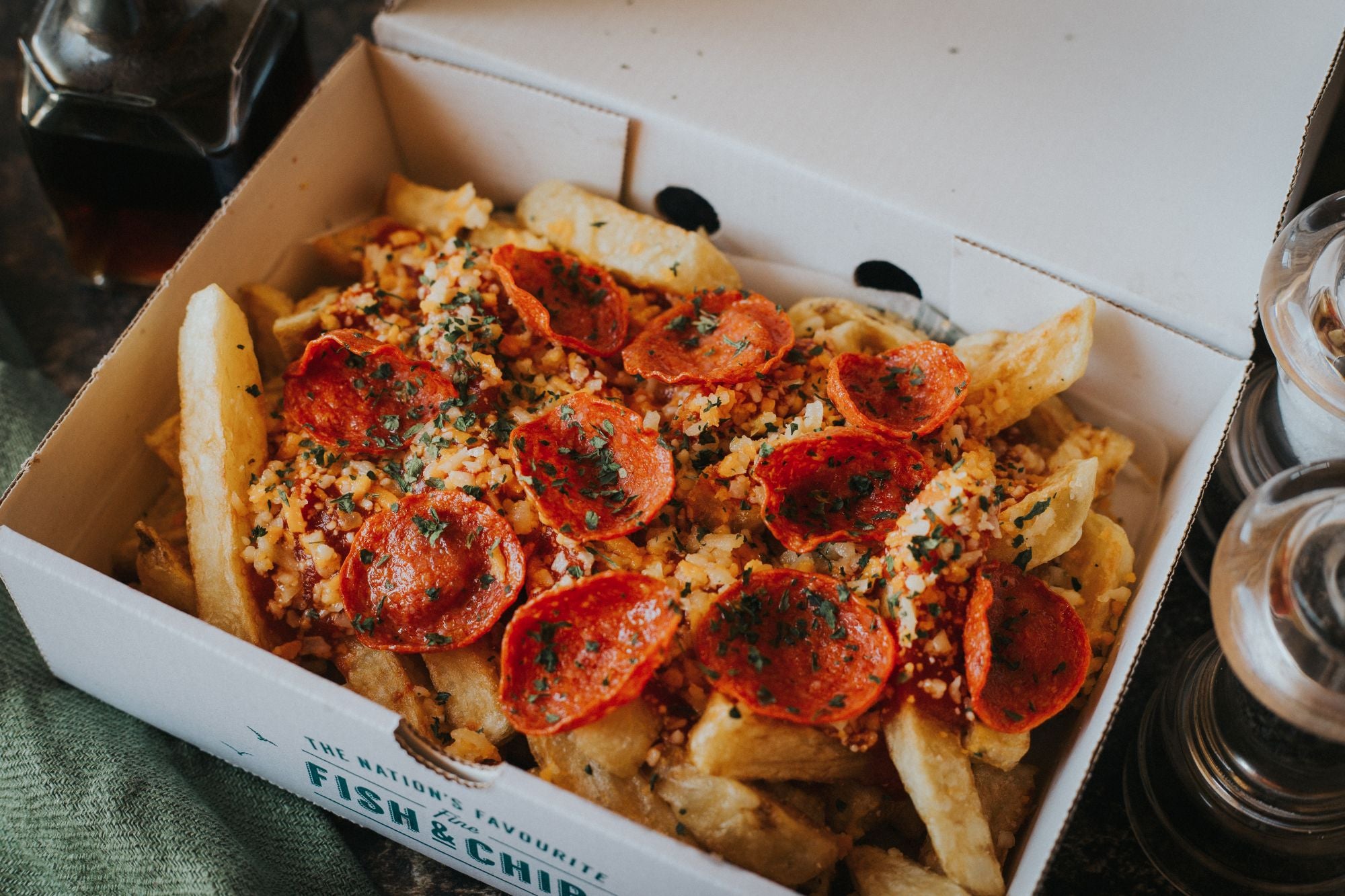 £5.20A portion of tasty chunky chips made from our own potatoes, freshly peeled and prepared in our shop. Topped with a mix of red Leicester and mature Cheddar cheese. Gluten free, suitable for vegetarians.